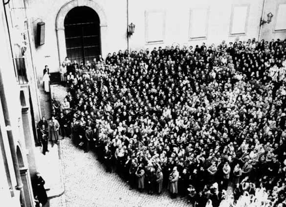 Torsk made a Med Cruise in 1952. This picture was taken on August 15 at Castle Gandolfo, where Pope Pius XII is on the balcony. Some of the Torsk crew are against the far wall.