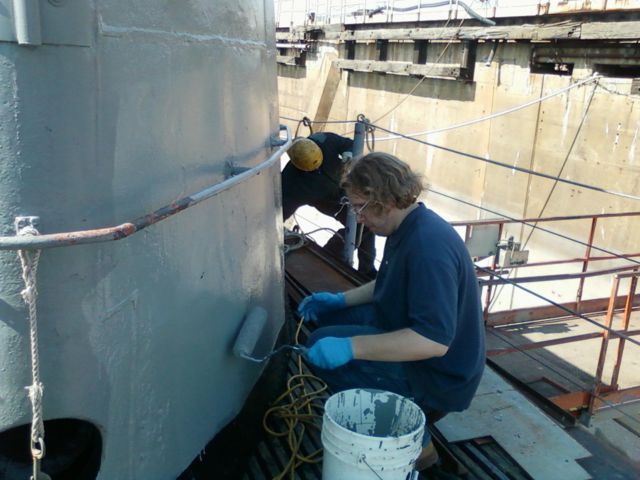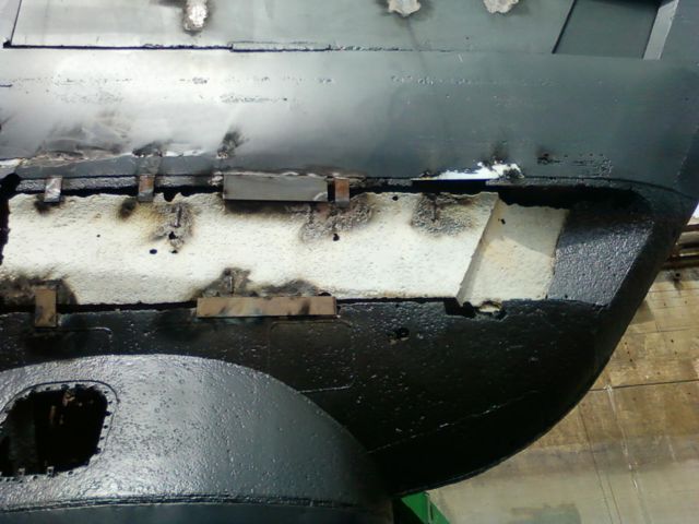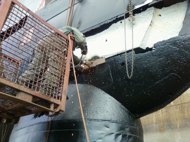 Zinc anodes were welded to the hull in multiple places to help prevent hull corrosion.