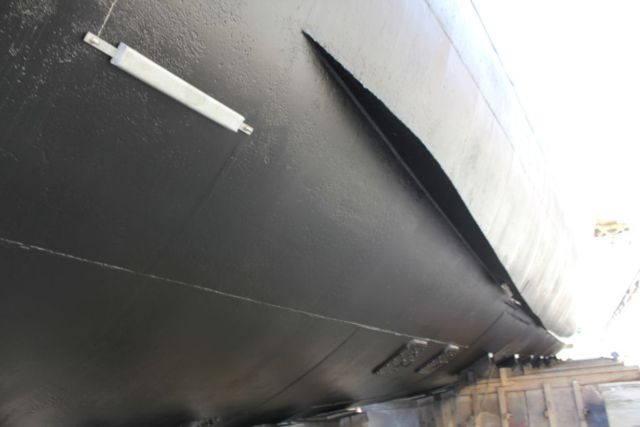 Port side bilge keel and one of the Zinc Anodes, looking aft.