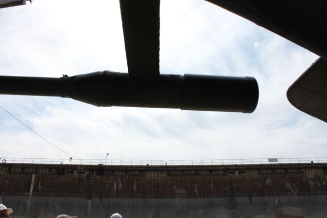 Starboard side of the sail. The large round port that is plated over is the exit for the Garbage Disposal Unit.