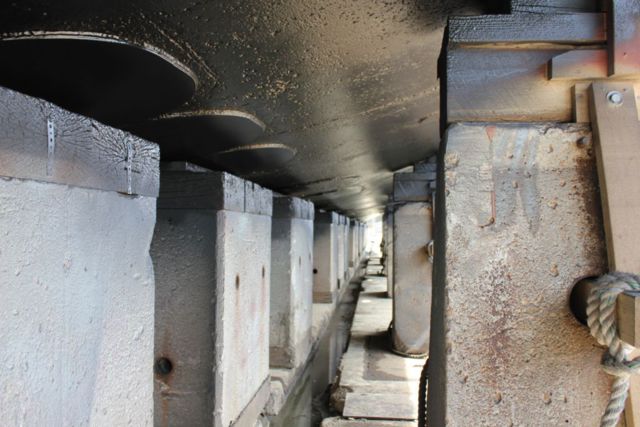 Starboard side at the keel.