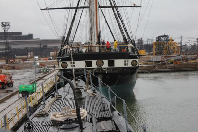 The port list can be seen in this photo looking over the bow at Constellation.