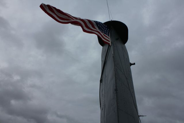 Chief Mike raises the flag for morning colors.