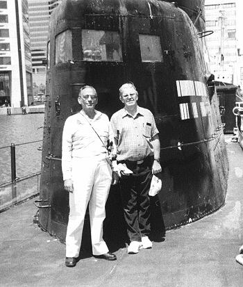 19 May, 1994. (L) Edward P. "Pat" Burke RMCS , Torsk Crew 1949.
