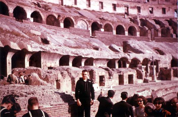 1966 - Paul Bissey standing in the coliseum in Rome. Torsk was in Naples for a