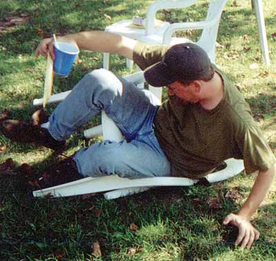 Ahhhh Scott - a little too much to drink?? Actually, he was trying to keep Archer (George's dog) from eating his paper plate, and leaned over too far!!!